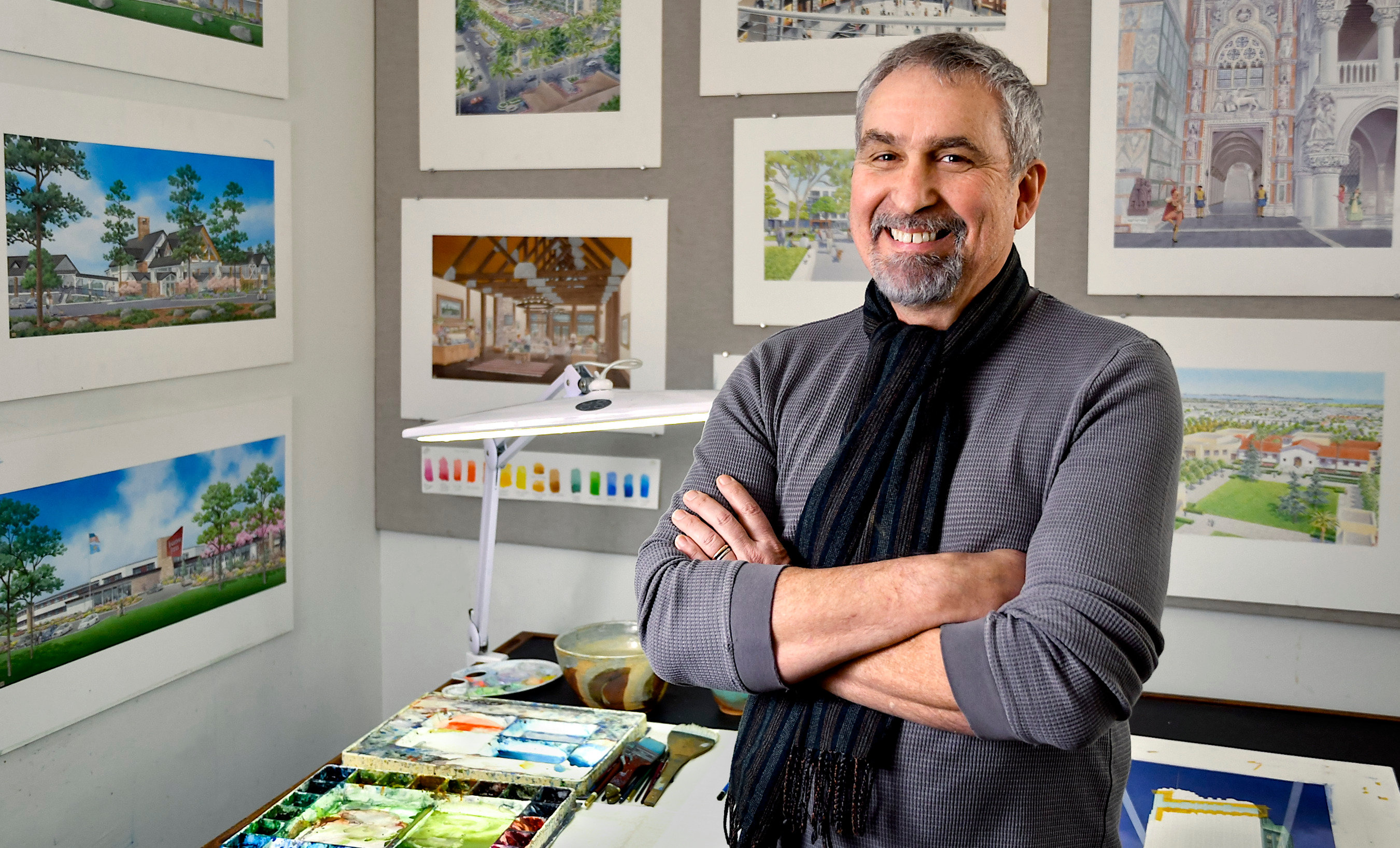 Born in Hollywood, California, by the age of three, Ian Espinoza had exhibited a love and talent for drawing. Raised early on by a single mother, his life forever changed when she married world-renowned architectural illustrator Carlos Diniz. His new stepfather recognized and encouraged Ian’s artistic talents, and under his tutelage, Ian learned the craft of architectural illustration. As an adult, Ian joined Carlos’s firm and worked with some of the world’s leading architects, Frank Gehry among them. After his stepfather’s retirement, Ian launched Ian Espinoza Associates Architectural Illustration, establishing his own reputation with an impressive roster of high-profile projects, including Hollywood & Highland, the San Diego Ballpark and Caesars Palace in Las Vegas.