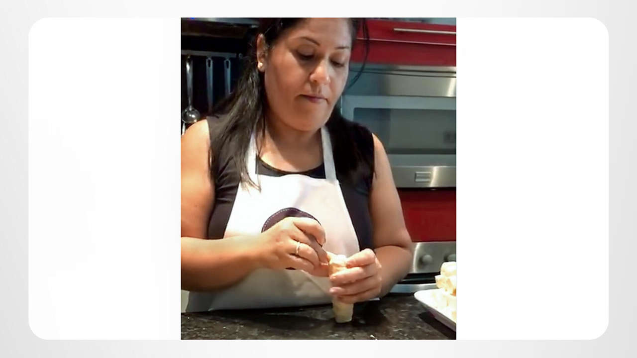 Maria’s busy making a delicious traditional Venezuelan appetizer called tequeyoyos. She rolls some cheese, ham and plantains into dough, fries it up and serves them … along with some great advice to keep moving forward to a flourishing and prosperous life!