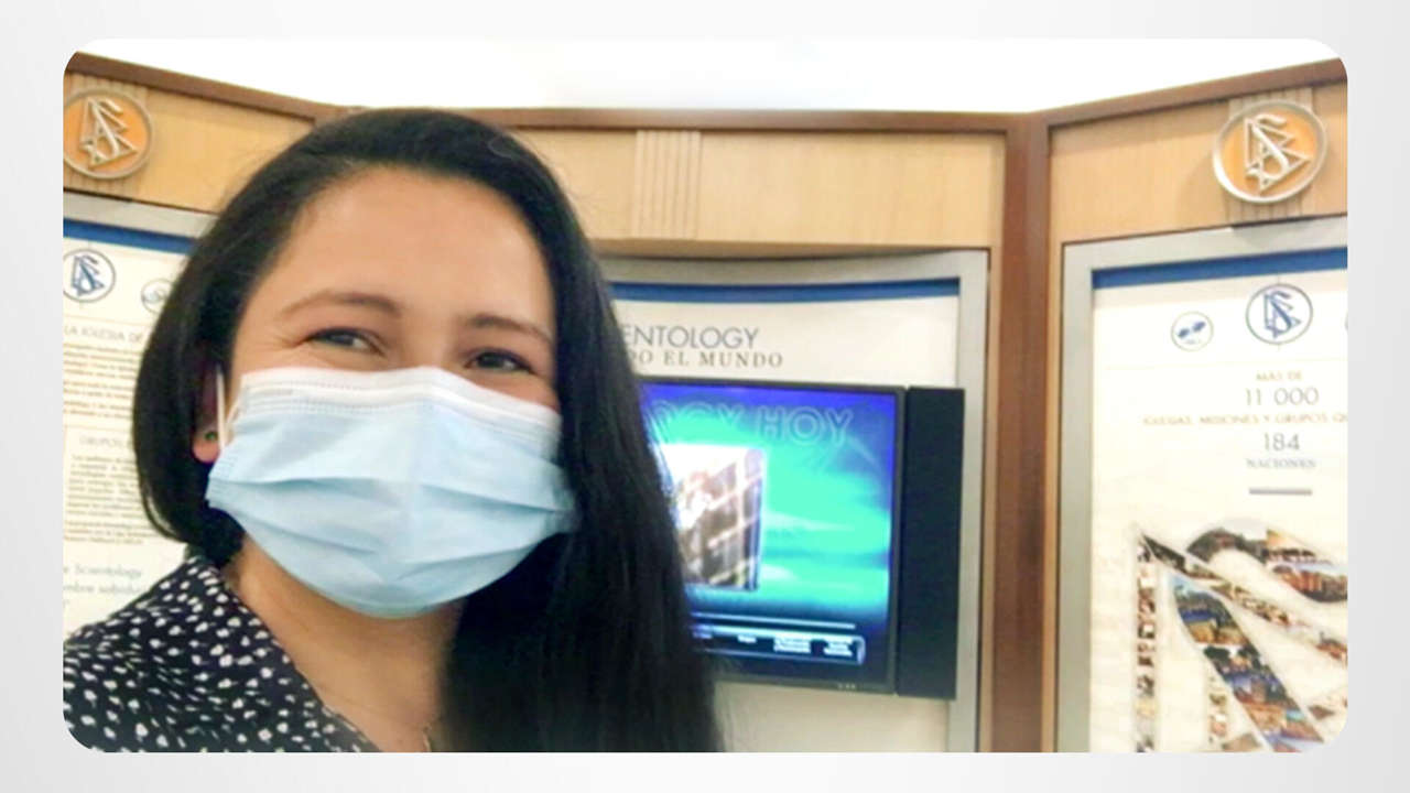 Nubia is back at the place she calls home—the Church of Scientology Bogotá. She’s making the most of it, moving up the Scientology Bridge and inviting everyone to join her.