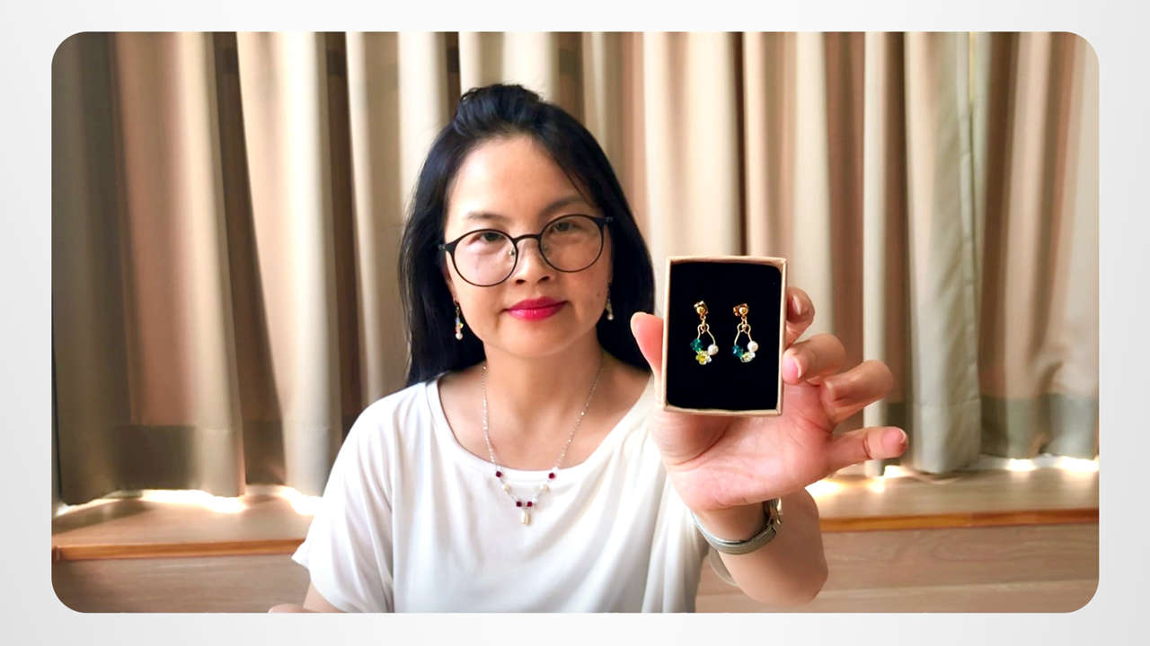 Yi-Wen wields a pair of pliers to fashion one‑of‑a‑kind crystal earrings. She loves to create beautiful things, and not just jewelry. She brings out the beauty in her entire environment as well—something she discovered how to do from Dianetics.