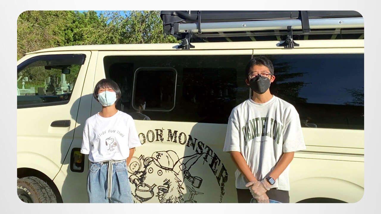 Aoi and Shogo just parked for a little “car camping.” Pull out the tent stakes, pop out the roof and they’ve got themselves a regular four-wheeled palace. Well, maybe not a palace, but it’s a perfect outdoor base for this brother-and-sister hiking and exploring team.