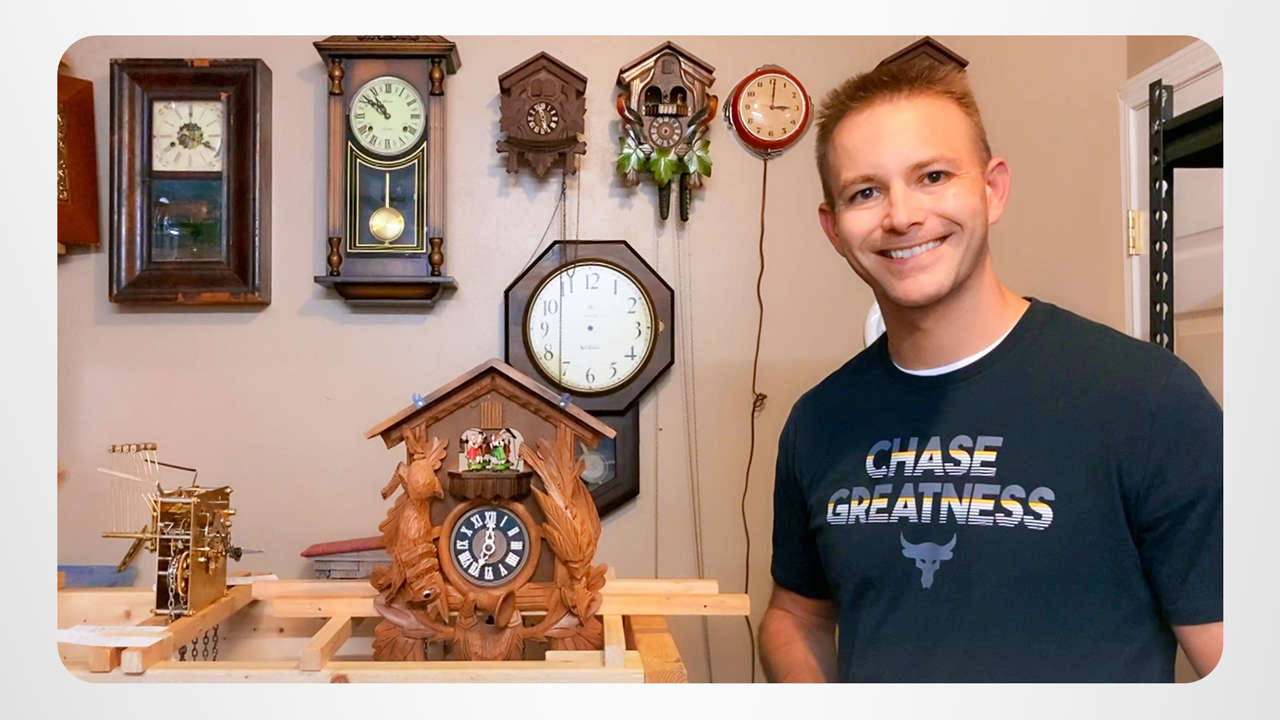 Christopher not only has an awesome collection of cuckoo clocks, he’s an expert at repairing them, too. With clocks in his collection that are over a century old, it’s a craft that requires tremendous care and expertise. Christopher applies the chapter entitled “The Secret of Efficiency” from The Problems of Work to help him complete his repairs in record time.