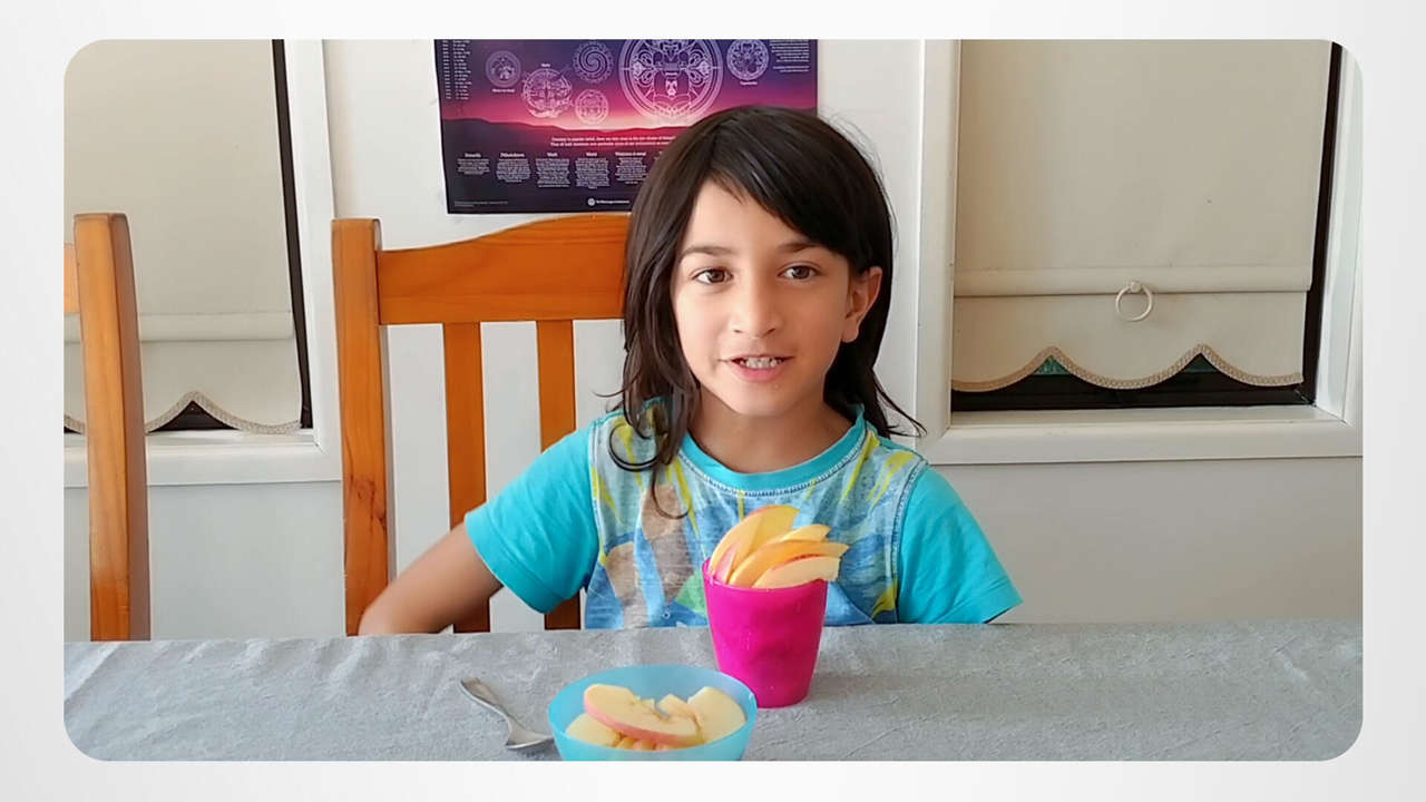 Thanks to Matteo’s mom, his snack time is yummy, nutty and nourishing. A little yogurt packed with scrumptious apple slices and walnuts, and this young guy’s got a mini-meal between meals!