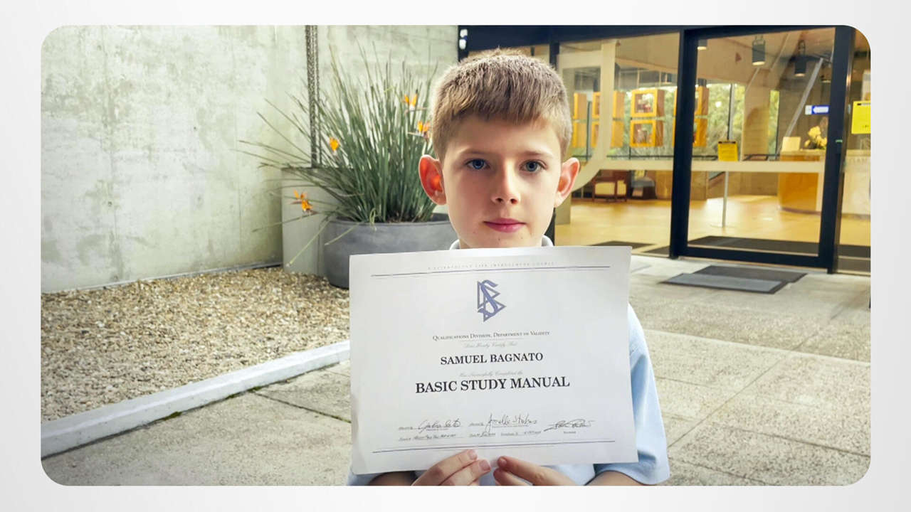 Samuel’s with his family at the Advanced Organization and Saint Hill in Sydney. He just finished the Basic Study Manual, mastering the three barriers to study. Now this supercharged young scholar is ready to tackle his next study challenge!